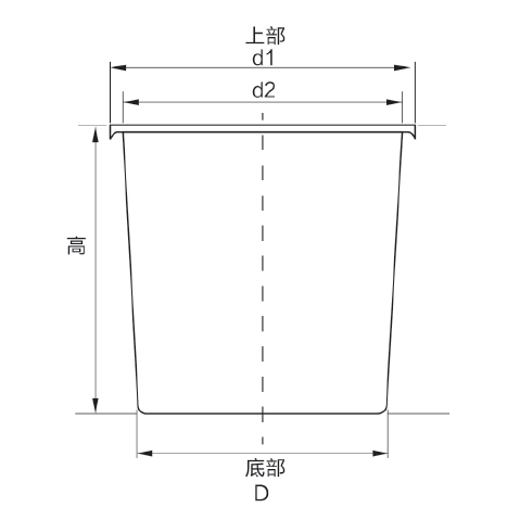 | 名称 | 型号 | 容量L | 上部外径d1 | 上部内径d2 | 底部D | 总高度H | 平均厚度mm |