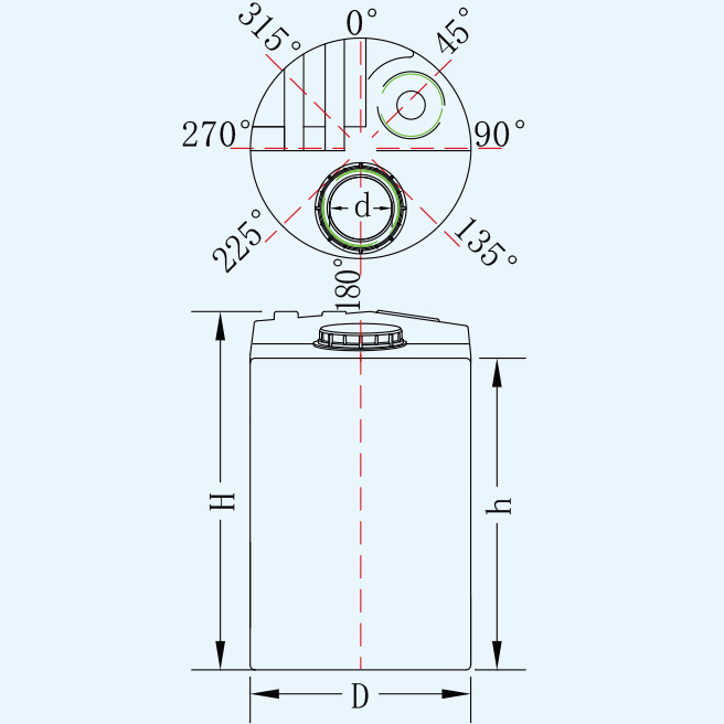 | 名称 | 型号 | 容量L | 人孔d | 直径D | 垂高h | 总高H | 平均厚度mm |