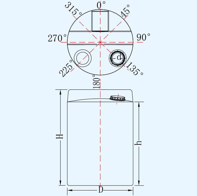 | 名称 | 型号 | 容量L | 人孔d | 直径D | 垂度h | 总高H | 平均厚度mm |