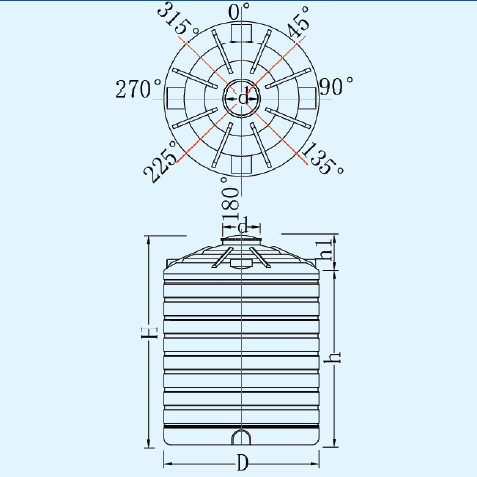 | 名称 | 型 号 | 容量L | 桶体D | 人孔d | 垂高h | 总高H |