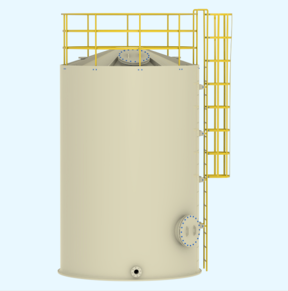 立式储罐结构形式有:平底平盖、平底锥顶、平顶斜底、锥顶斜底、活动盖、敞口等多种形式适合各种工况。大型储罐可配有安全围栏及爬梯,按照国家标准设计!
