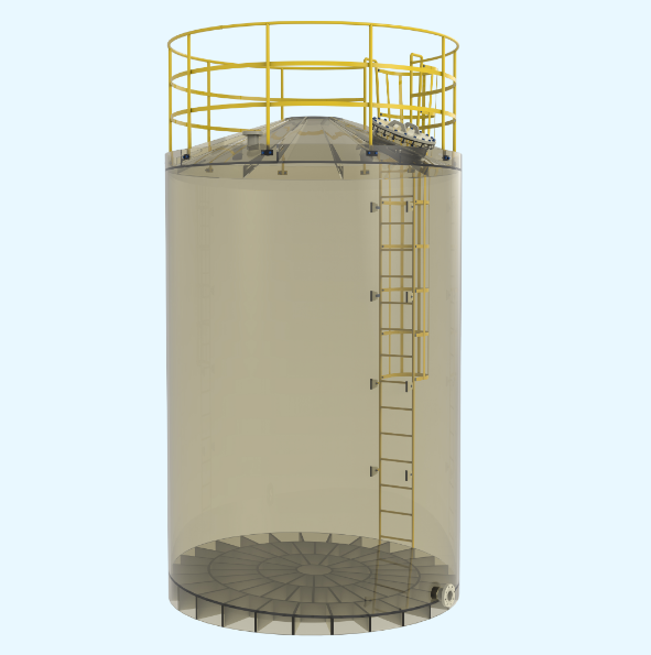 立式储罐结构形式有:平底平盖、平底锥顶、平顶斜底、锥顶斜底、活动盖、敞口等多种形式适合各种工况。大型储罐可配有安全围栏及爬梯,按照国家标准设计!