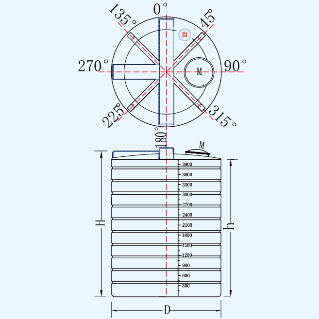 | 名称 | 型号 | 容量L | 人孔d | 直径D | 垂高h | 总高H | 平均厚度mm |
