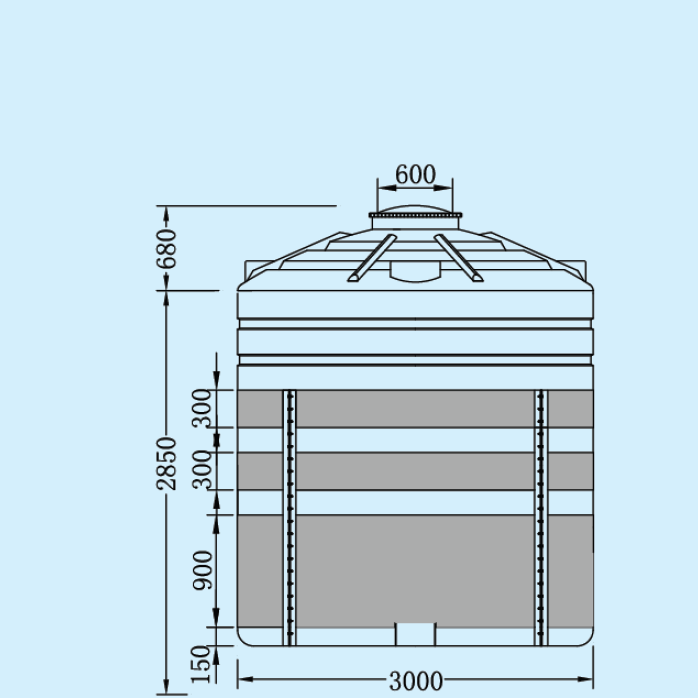 ●为延长PE容器使用寿命和提高安全性,大型PE容器应加装补强套。